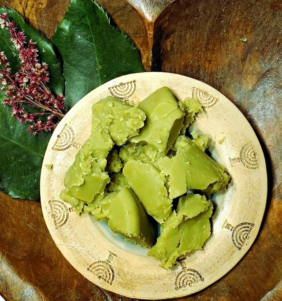 Aroma: Green, fruity, creamy, with honey-green notes and a slight woody scent. The color ranges from light to medium green, and it has a semi-solid to solid, creamy green wax texture.