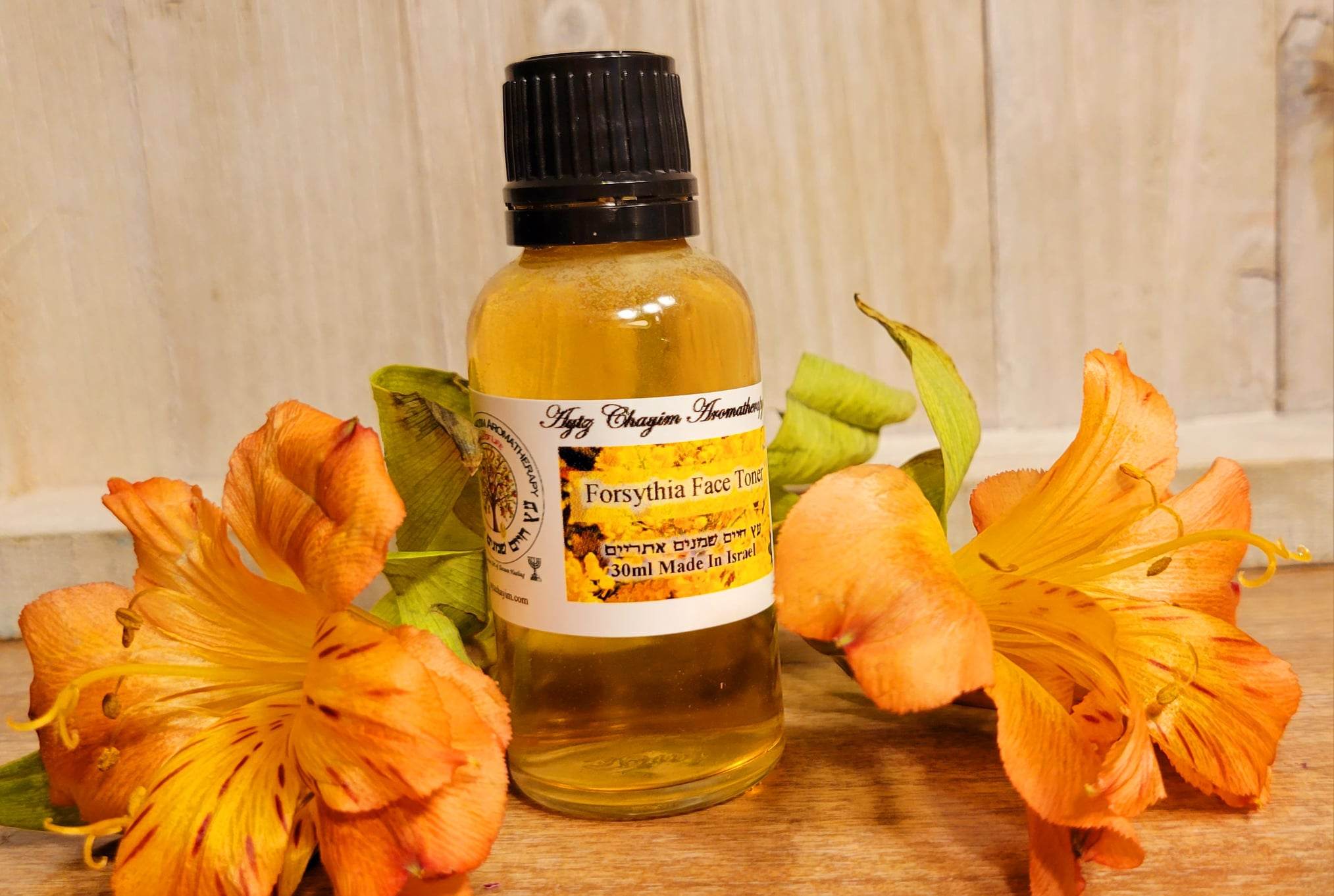 Soft Forsythia flower Aroma makes this toner a soothing toner that is made with Forsythia petals that we soak in forsythia hydrosol water from our fresh distilled forsythia flowers so the flower essential oil is in there and with our freshly distilled witch hazel flowers water.