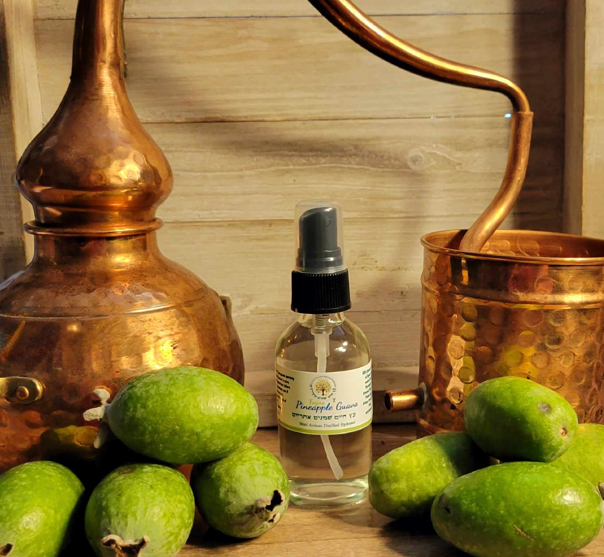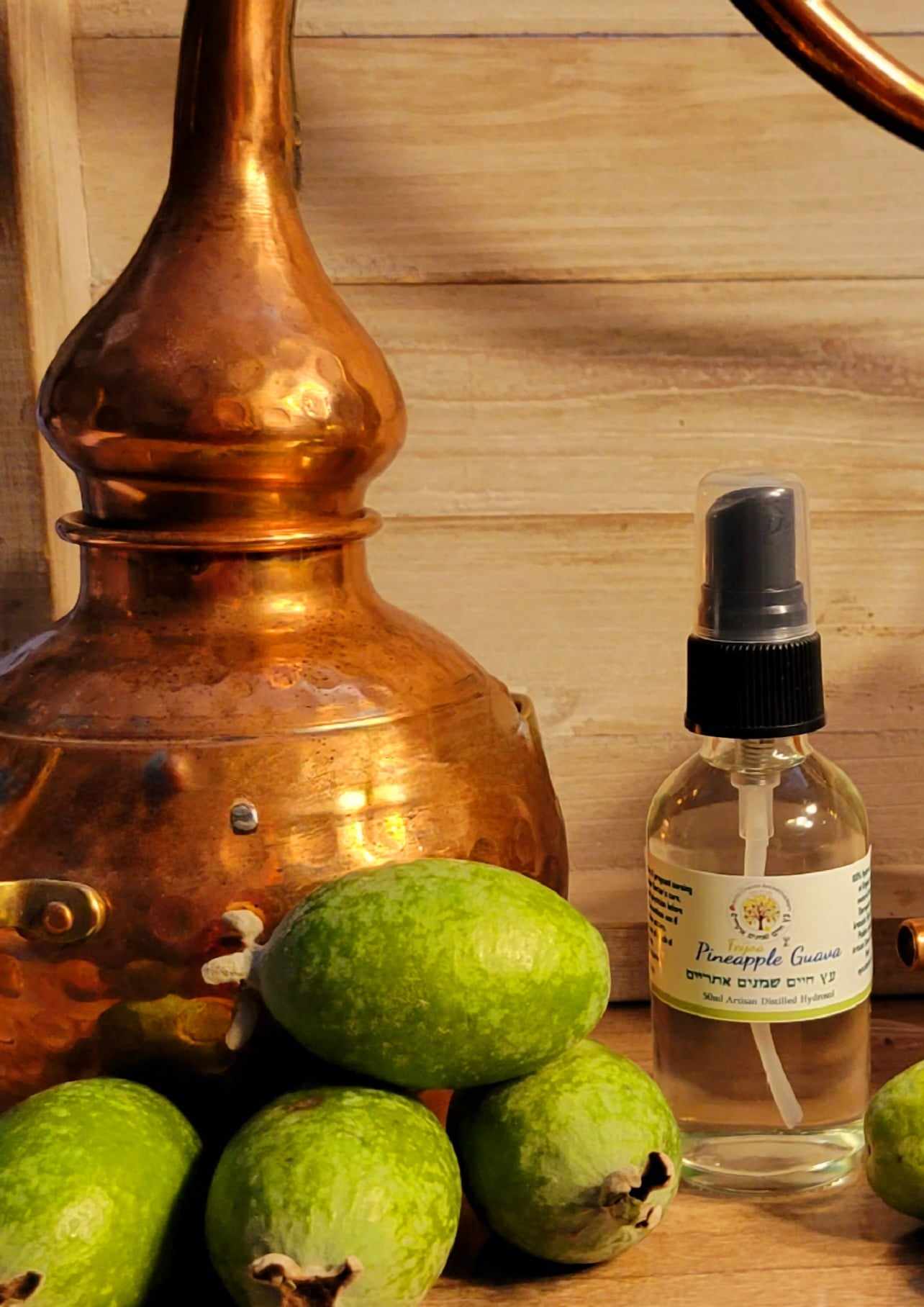 Pineapple Guava was gathered in the upper Galilee region of Israel and steam distilled on Rimmon Farms by Golan and Hodaya Weiss. The beautiful musky sweet lime guava fruity fresh with hint of green apples like aroma is excellant for DIY cream, lotions and use as a toner.