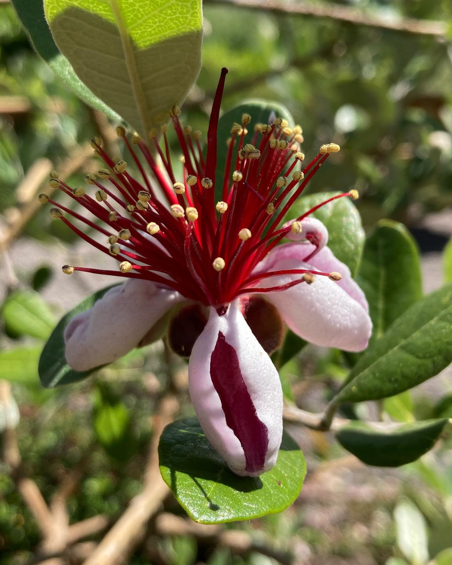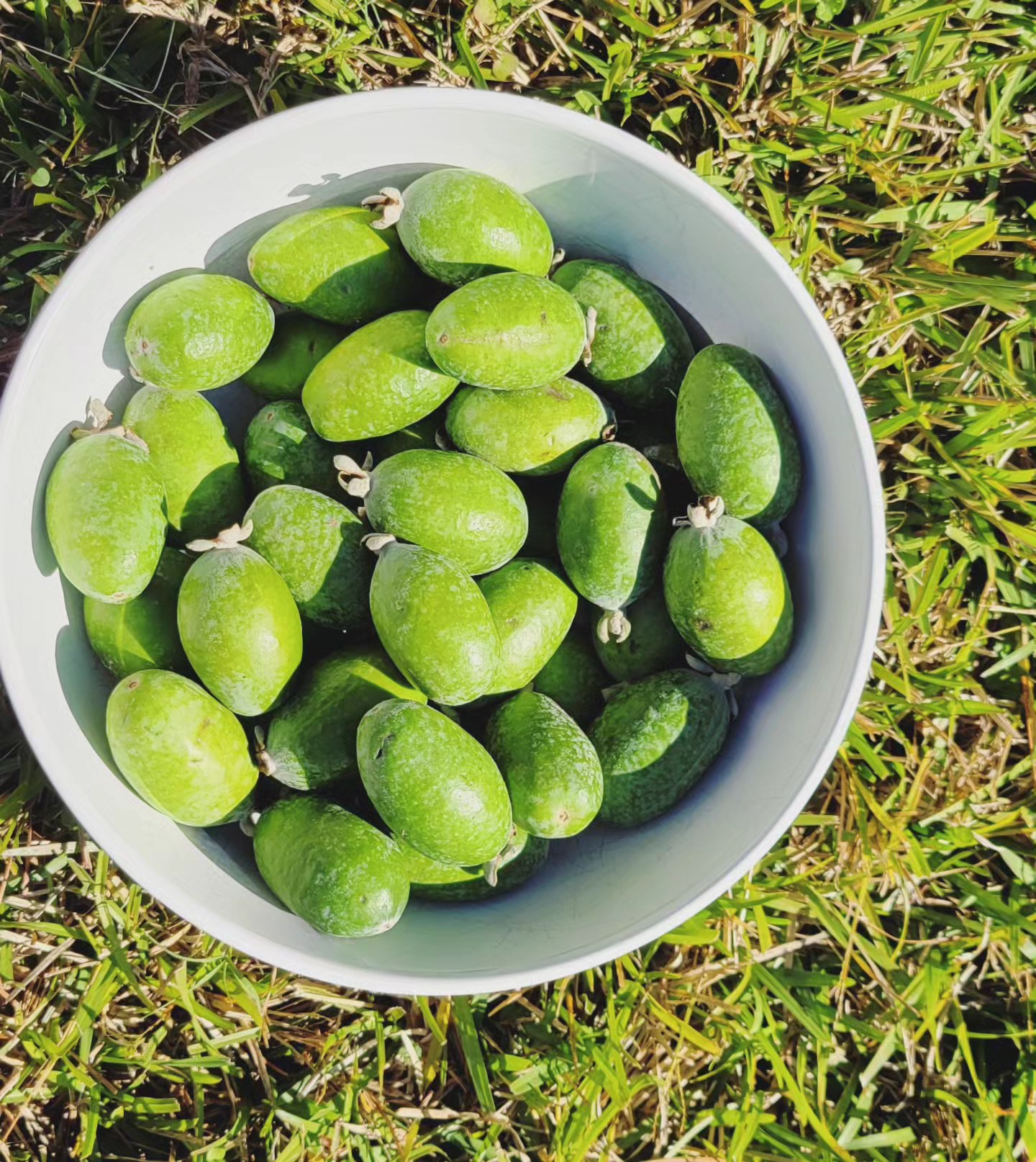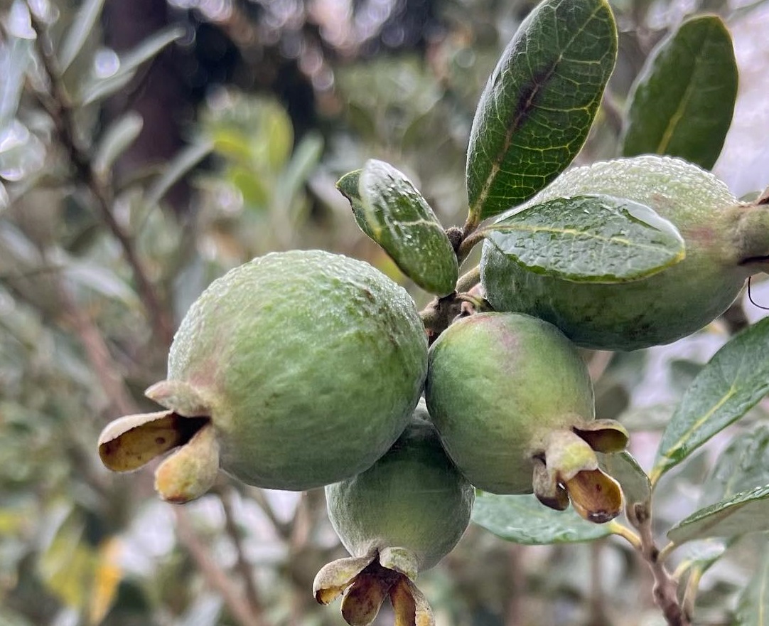 Pineapple guava trees are both beautiful and bountiful, yielding a tasty fruit that is guava-like in taste and appearance. the aroma is so strong just walking by a tree filled with fruit. Also sometimes known as feijoa, Acca sellowiana is not the same as a common guava tree Psidium guajava ie pink guava, though they are both part of the Myrtaceae family.