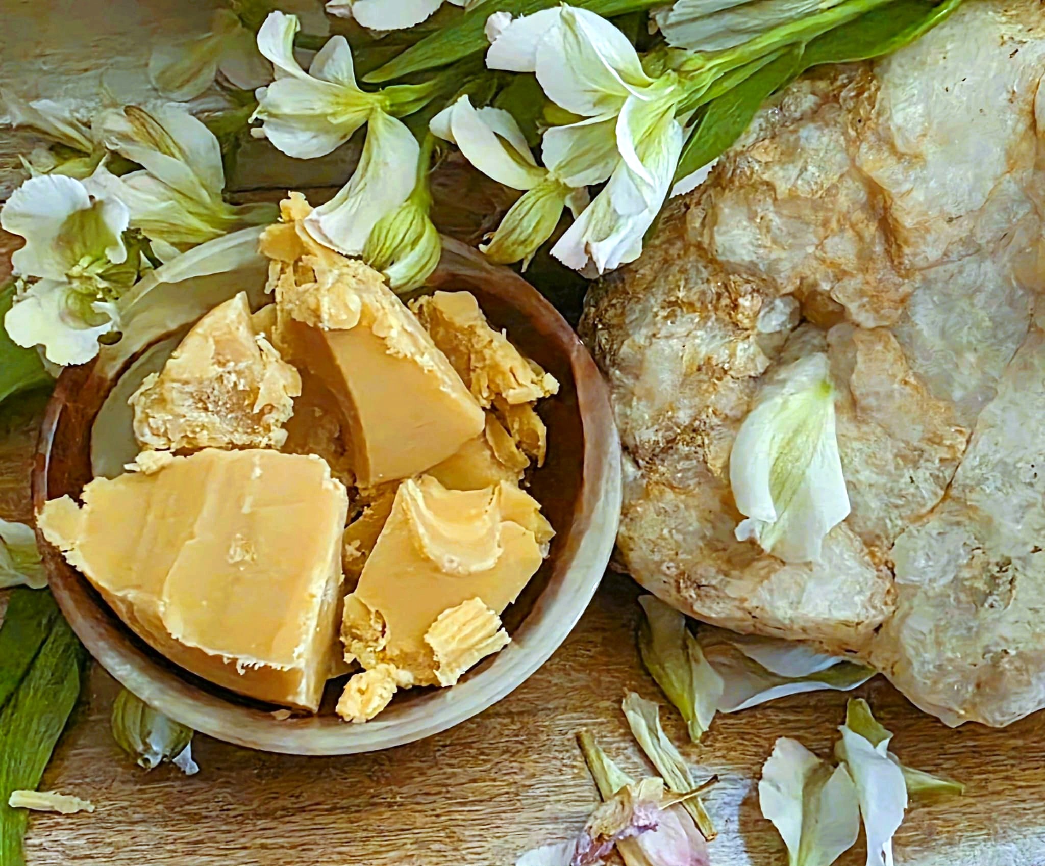 Aroma: This wax has a rich, sweet-herbal scent with floral notes of black currant, along with a woody-leafy aroma that is characteristic of acacia flowers. Locust Acacia wax is derived from the extraction of the concrete. It is a yellowish-beige colour, a waxy by-product of CO2 extraction. White Locust Floral Wax (Robinia pseudoacacia) with sweet tenacious powdery perfume aroma. Small production artisan extraction, excellent for perfume making, soap making, and incense
